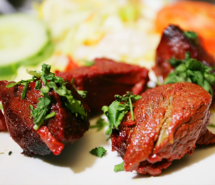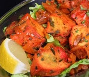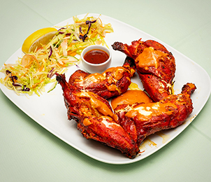 Chicken marinated in spices with yoghurt, barbecued in tandoor)